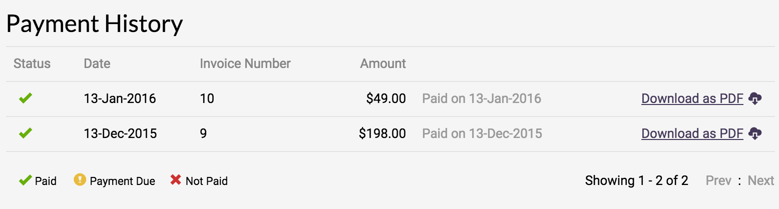 Users can directly download their past invoices as a PDF file if they need them.