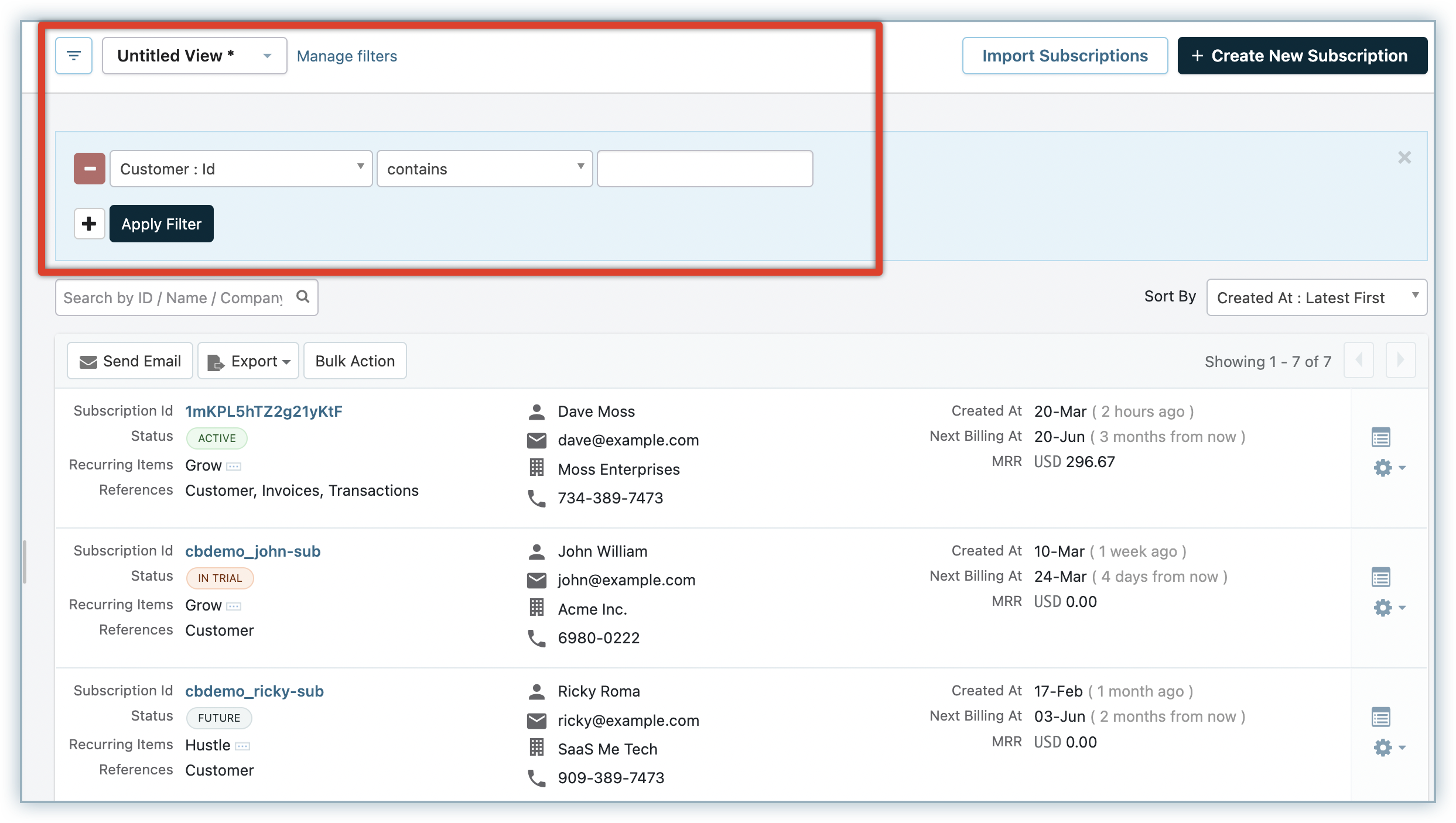 Chargebee allows you to filter/segment your customers the way you like, so you can create and send targeted emails.