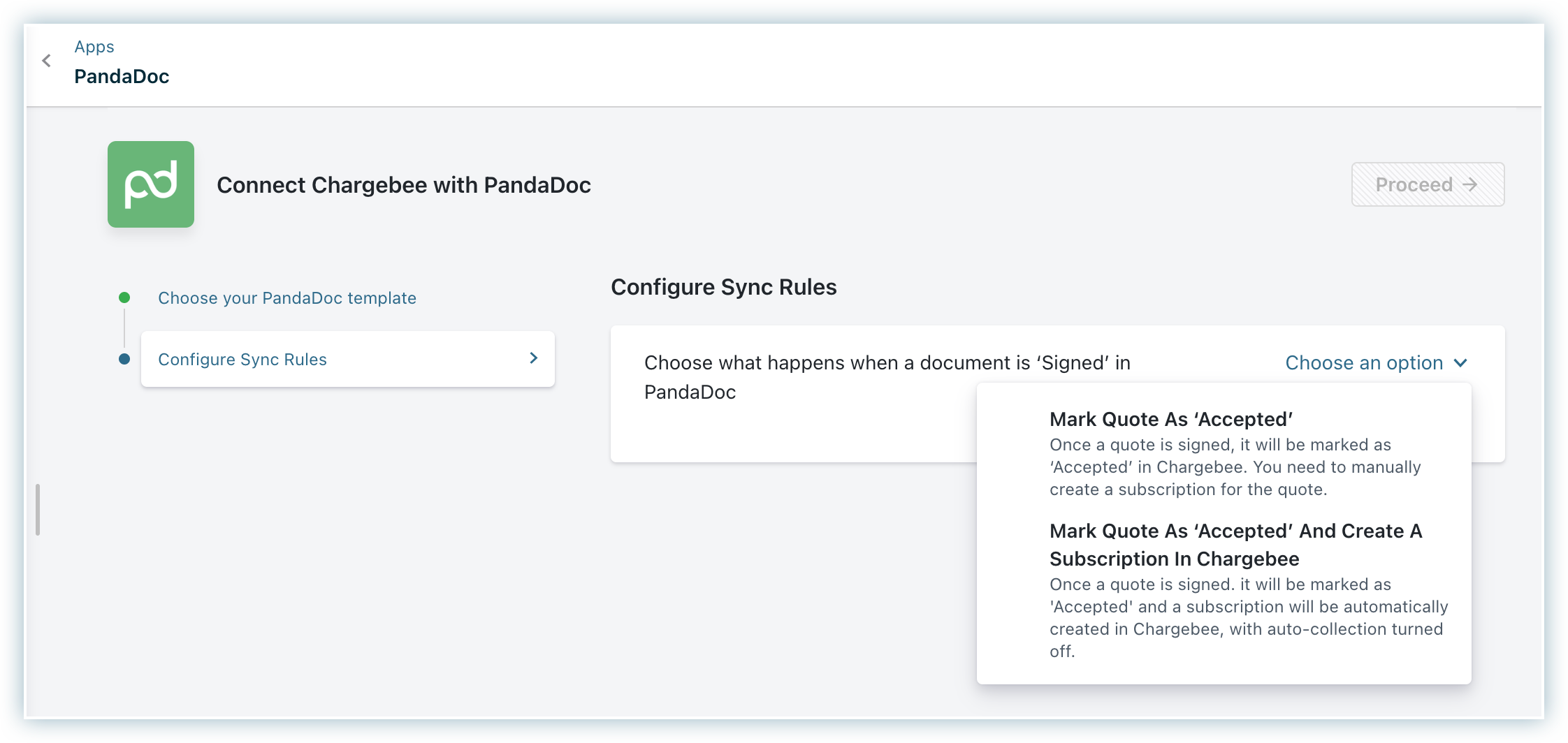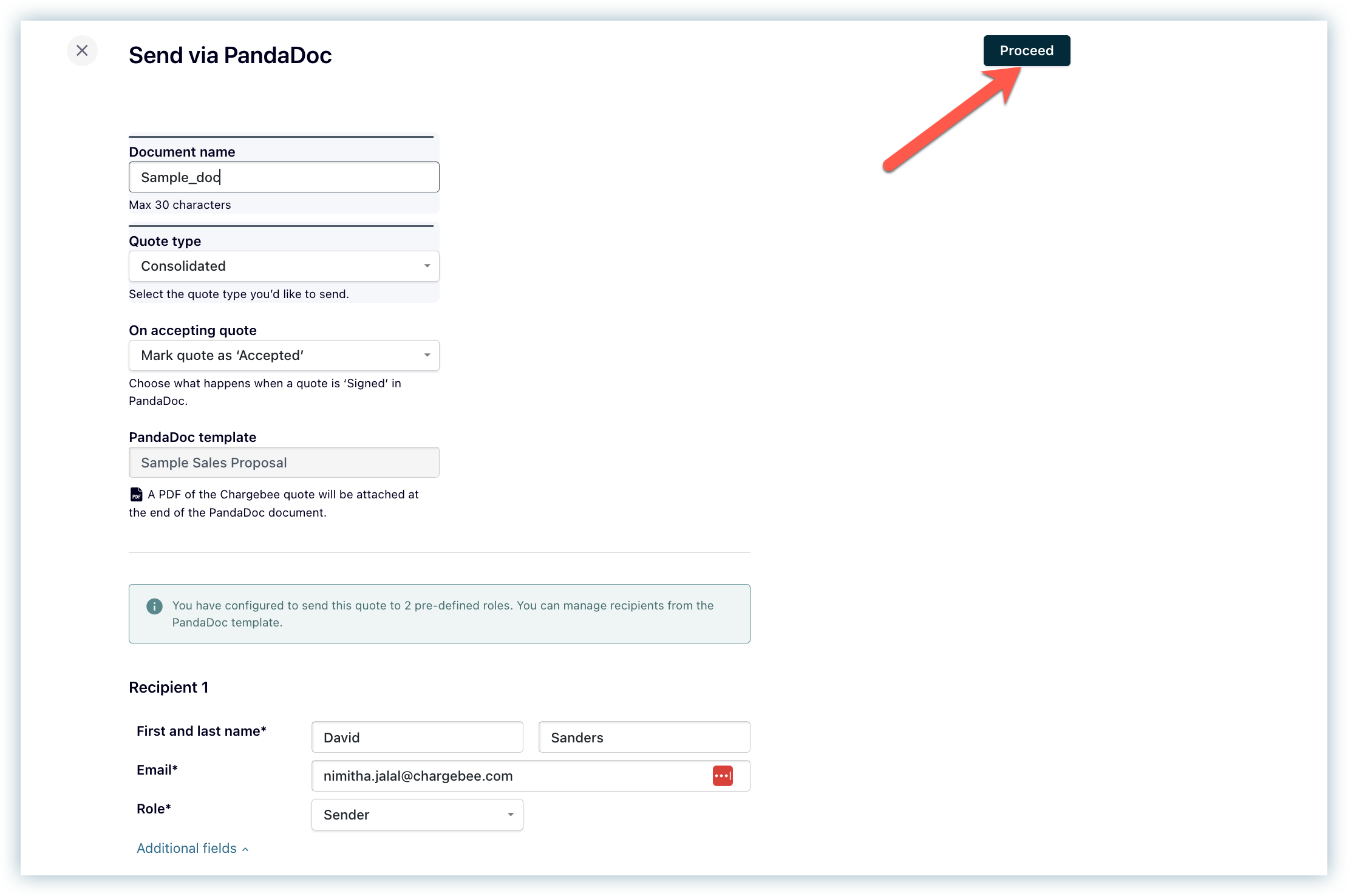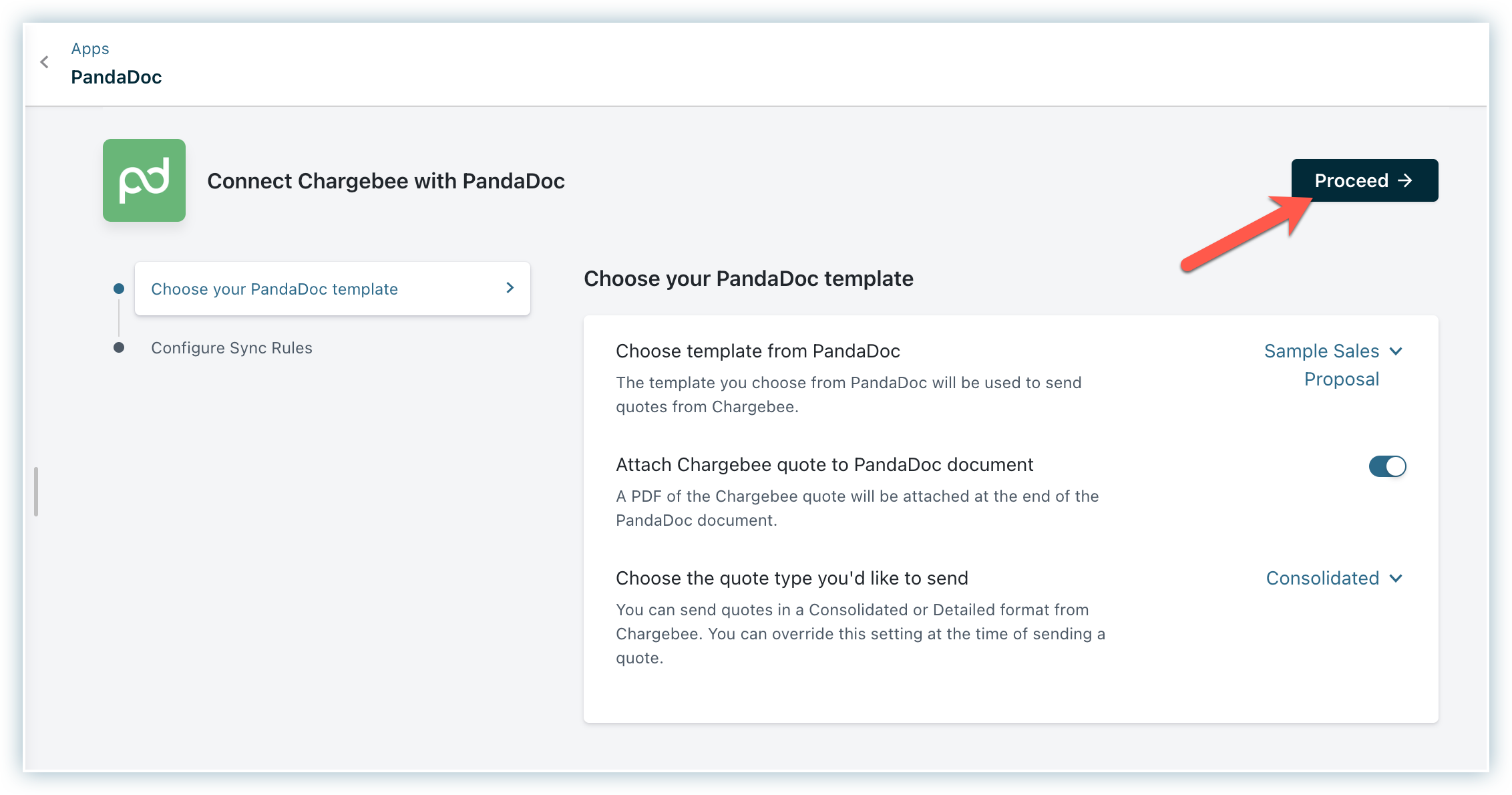 To enable PandaDoc for their individual Chargebee accounts, sales users must follow the steps above to set up their own integration instance to send Chargebee quotes via PandaDoc.