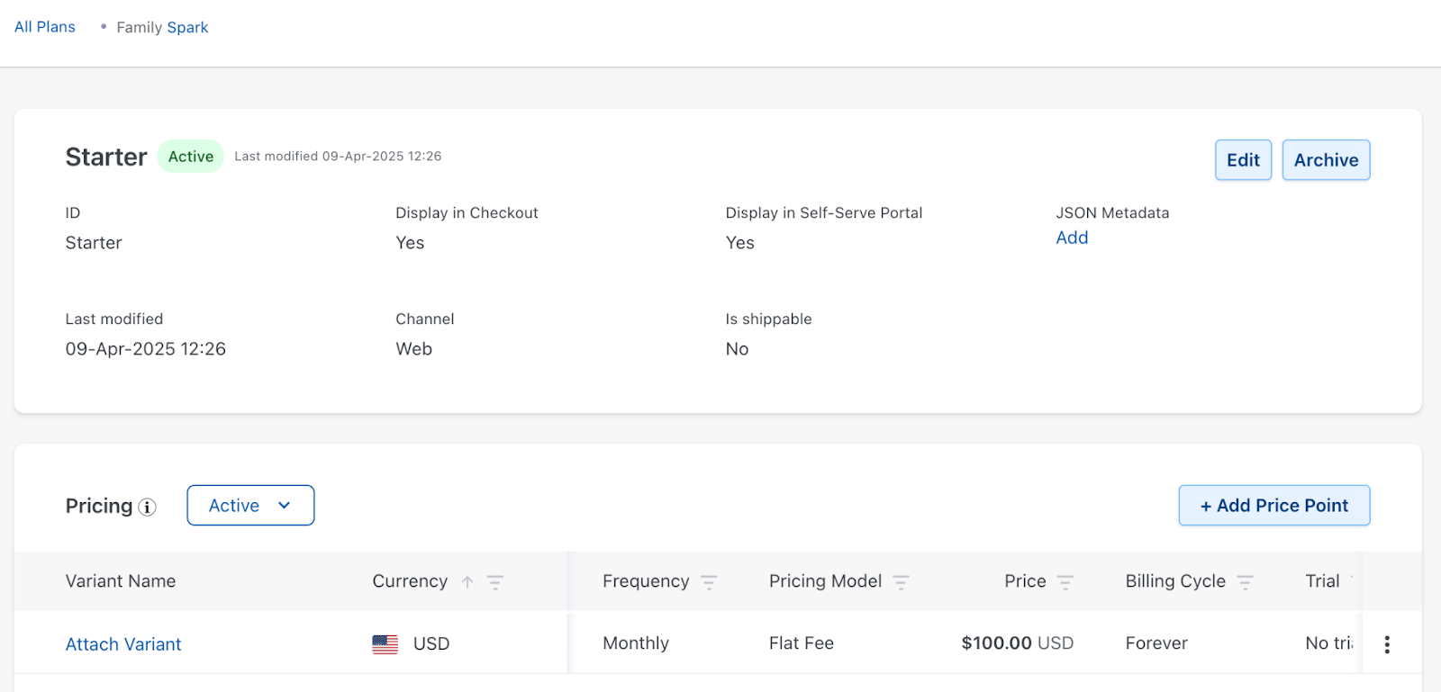 Your product catalog is being upgraded to a newer version behind the scenes. You will see an updated interface in the product catalog section, including the introduction of product families and price points. Your existing plans, add-ons, pricing, and subscription behavior all remain the same. The upgrade expands what is possible without modifying what is already in place.