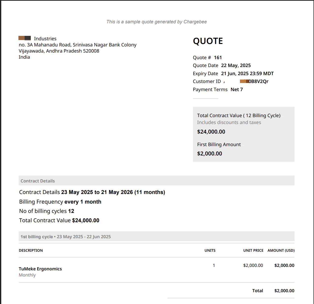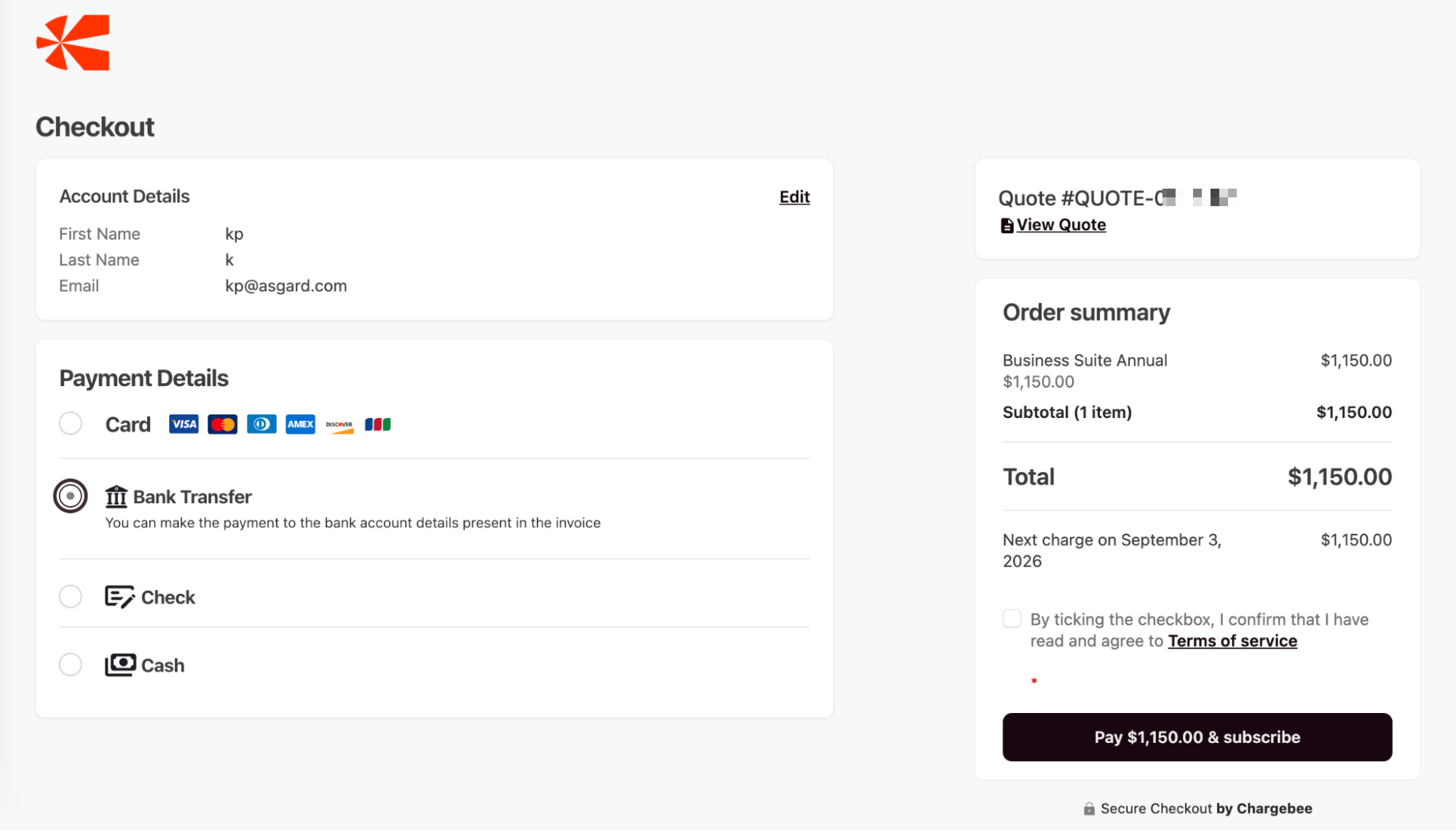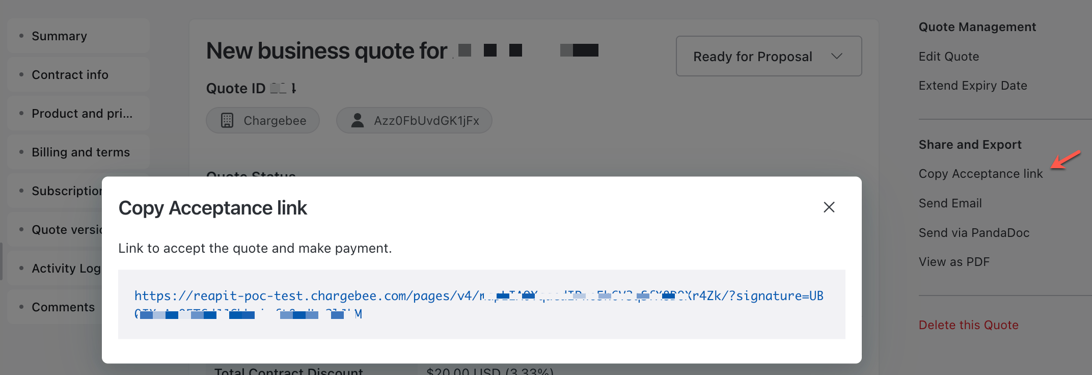 This checkout URL allows the customer to accept the quote and make a payment.