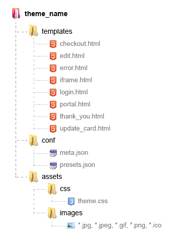 The themes come in a zip file and contain the folder structure shown below. All the files are mandatory and should be present in the theme zip when uploading your themes.