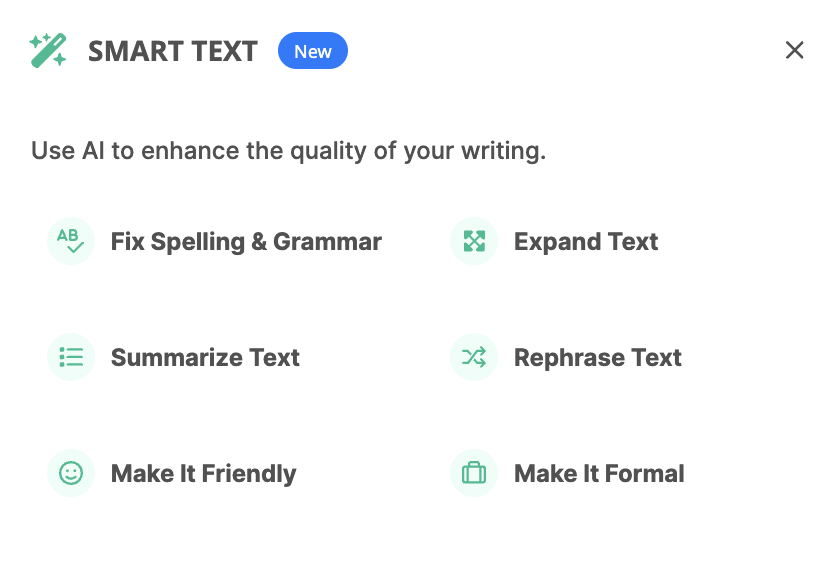 Add Quality Text Content You can use the Smart Text option in the content format panel powered by artificial intelligence to enhance the accuracy of your text content.
