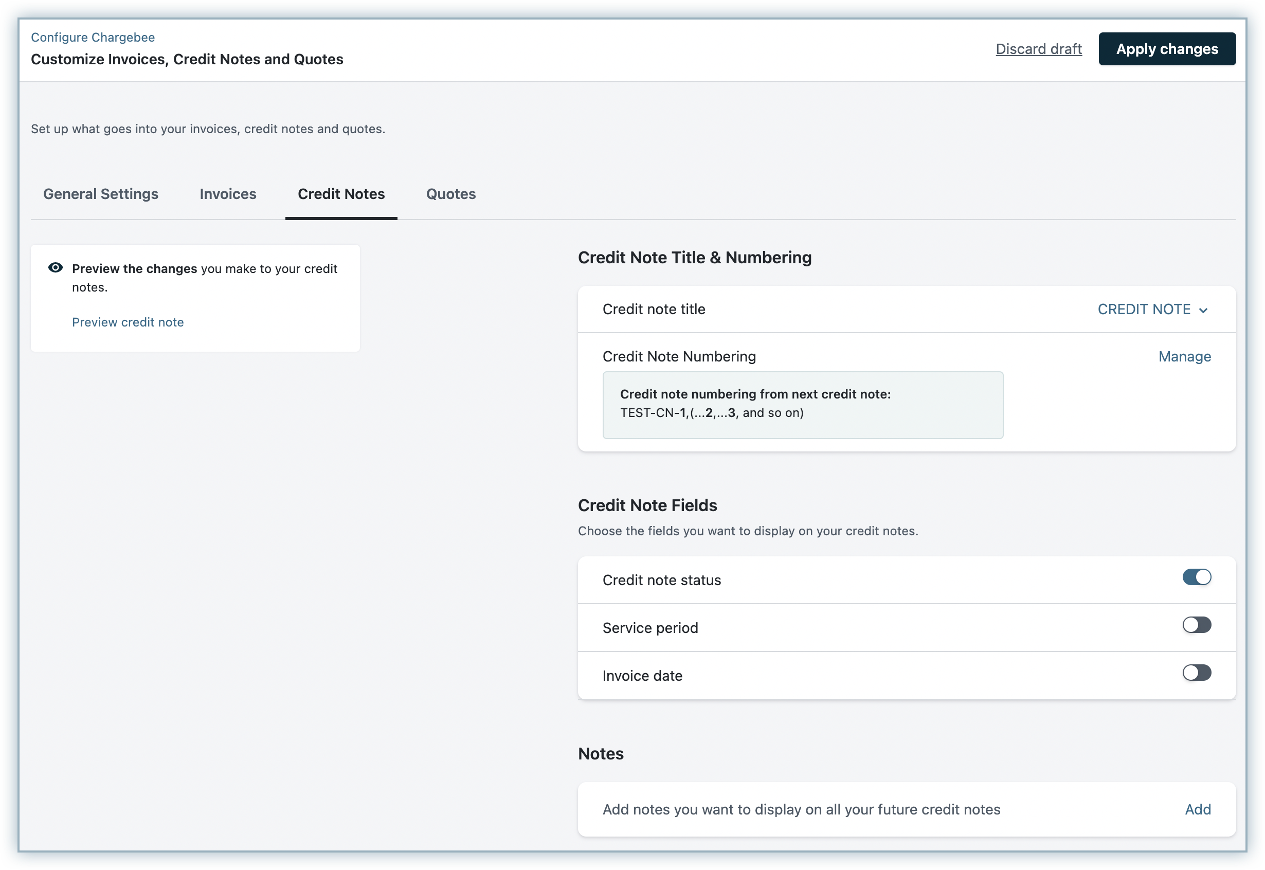 Navigate to Settings > Configure Chargebee > Invoices, credit notes and quotes to access this feature.