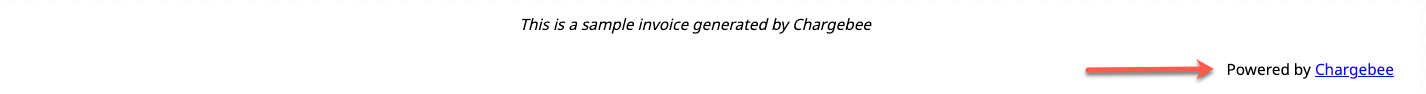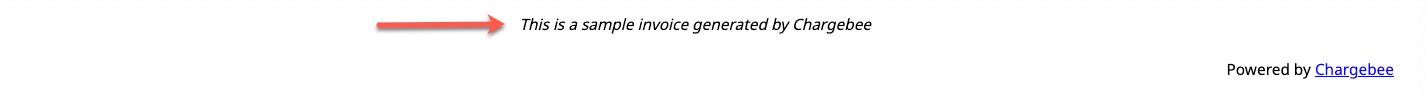 When the feature is enabled on your Test sites, the header contains the following text which cannot be removed: This is a sample invoice generated by Chargebee.