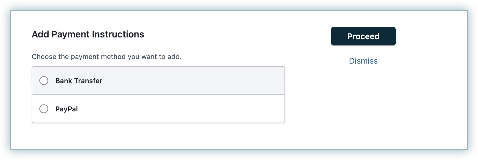 While Bank Transfer and PayPal options are available by default as shown below, ACH Credit Transfer is made available only when applicable.