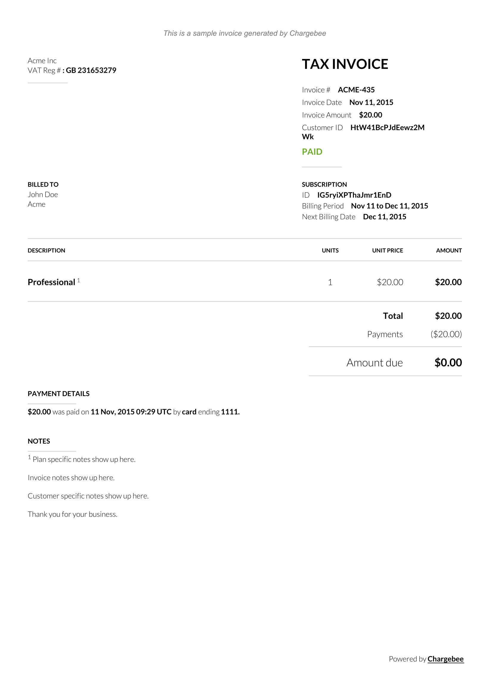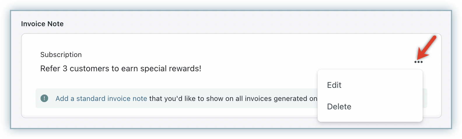For example, Invoice Notes for a subscription can be passed with the Create a subscription API request. You can also use the Update a subscription API request to create Invoice Notes if not added via the Create subscription API. The existing Invoice Notes of a subscription can be edited or deleted using the Update subscription API request.