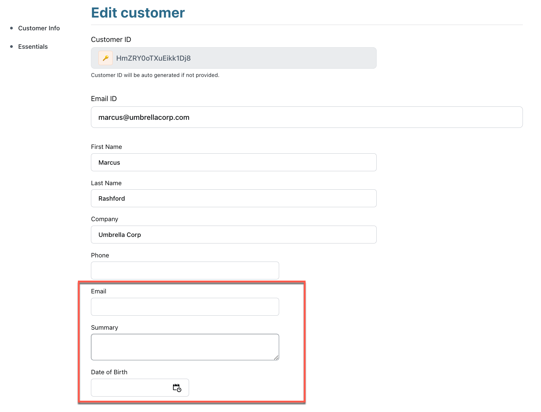 Use the option to create custom fields for the Customer object if you need to collect customer-specific information, such as date of birth, age, or gender.