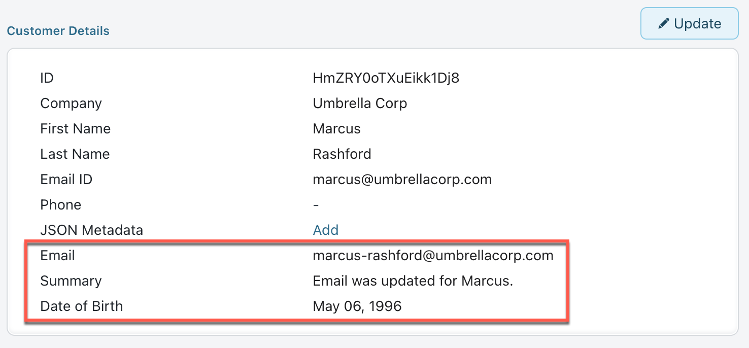 For example, the data captured for custom fields created in Customer Object will appear in the Customer Details section.