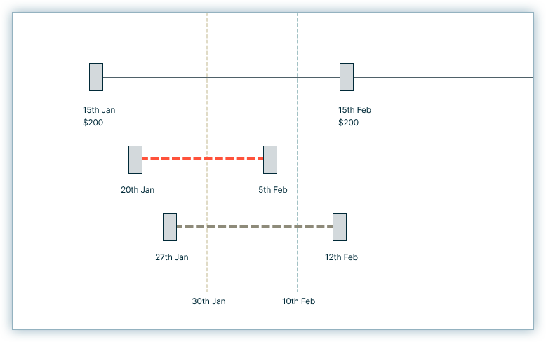 | Addon 1 | January 20 - February 5 | No | Prorated charge from February 5 - February 15 |