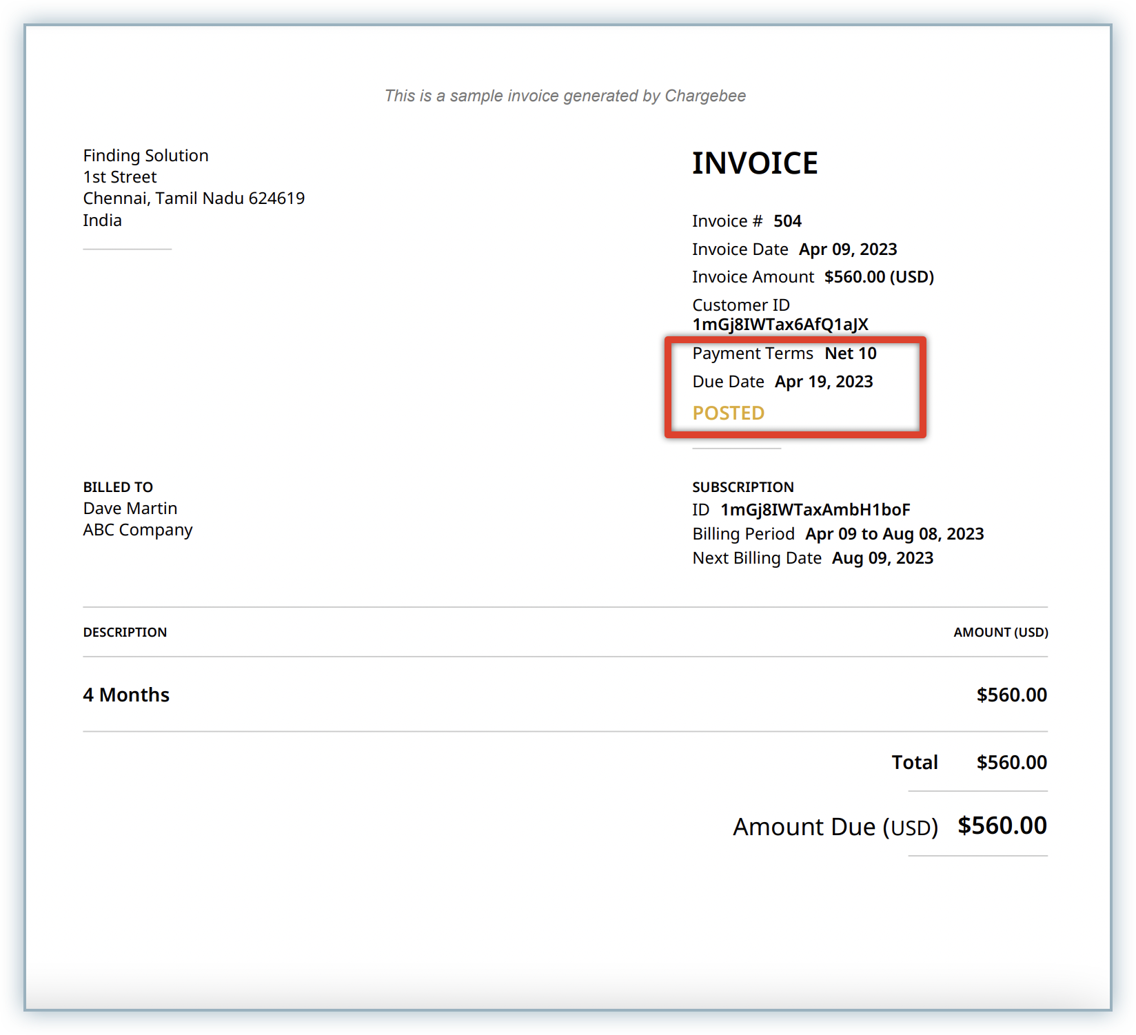 Once Payment Terms is enabled, invoices will be created in Posted status for active subscriptions.