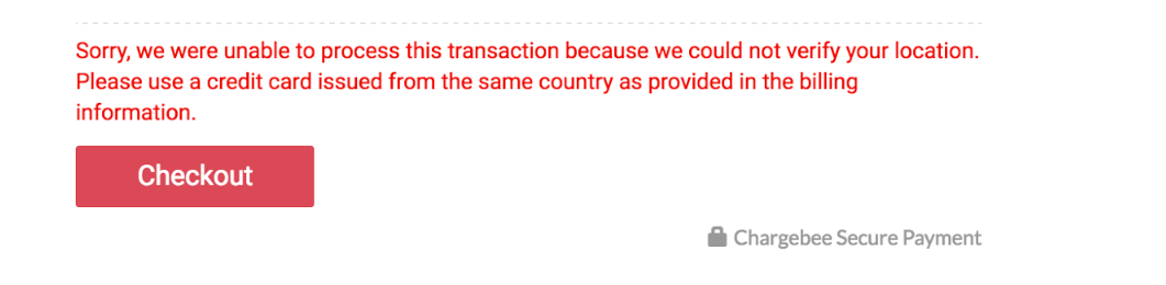If your customer's location validation fails, they will not be able to complete their order. They will receive the following error message: