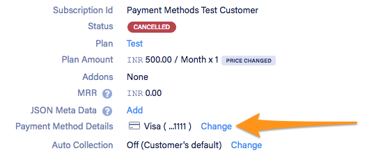 Click Change against the payment method assigned for this subscription.