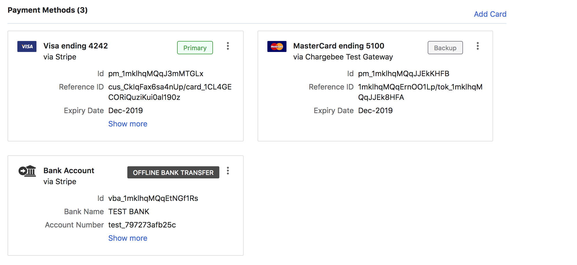 Here's how the primary and backup payment methods are displayed in the customer details page:
