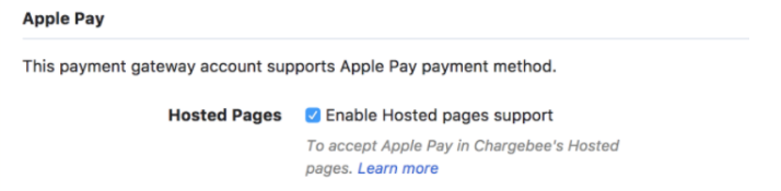 Once enabled, you will see the option to enable Apple Pay in Chargebee's hosted pages.