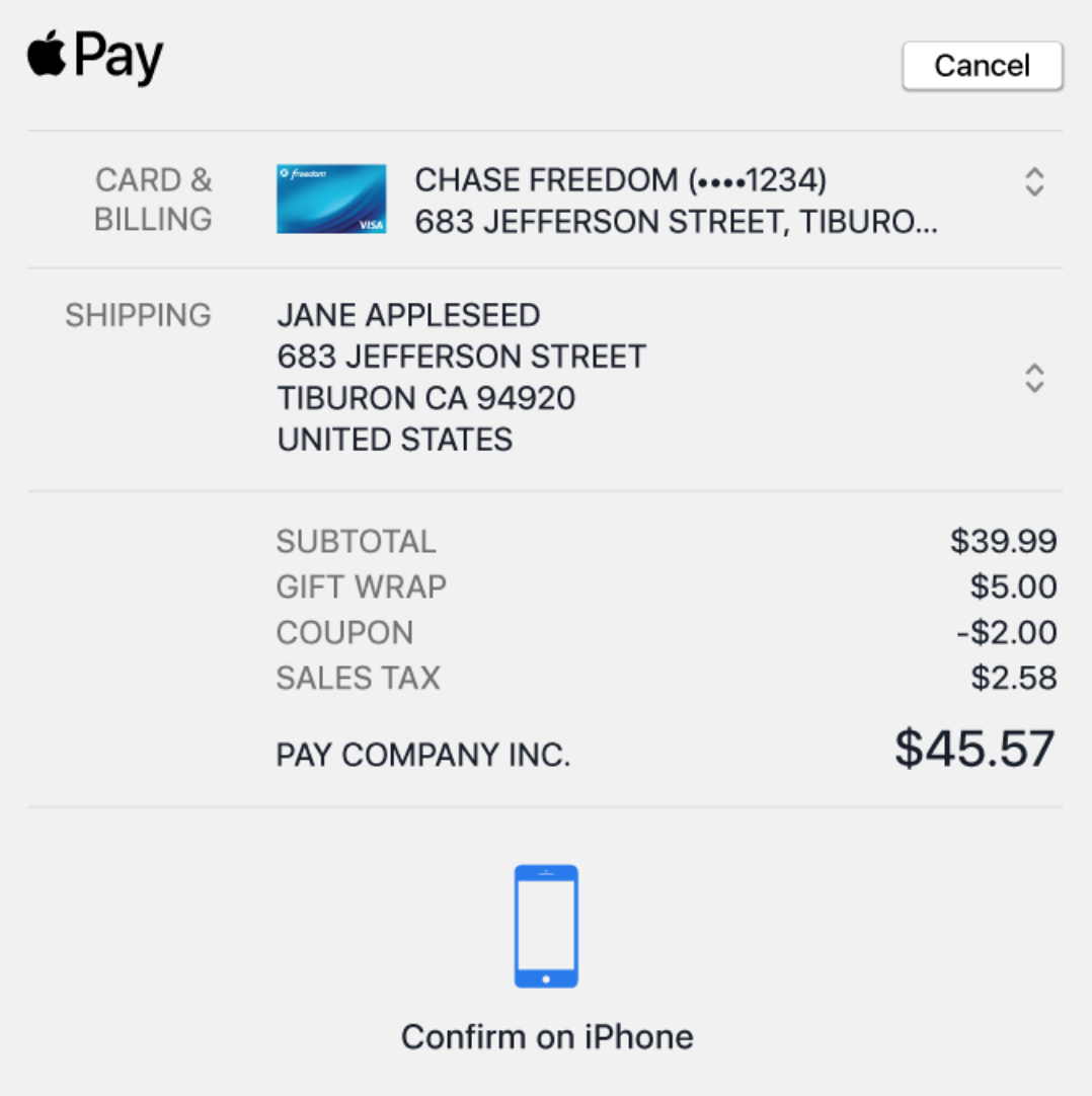 You can customize the contents shown in the Apple Pay payment sheet, which is similar to an invoice with details about your card, billing, shipping information, discounts, and taxes.